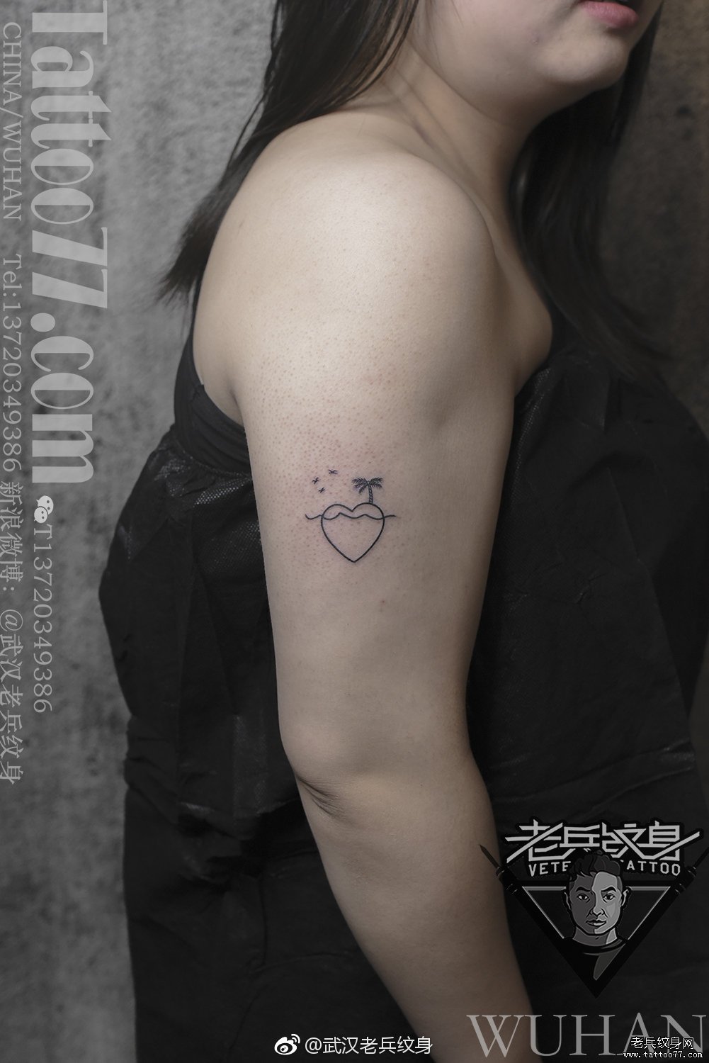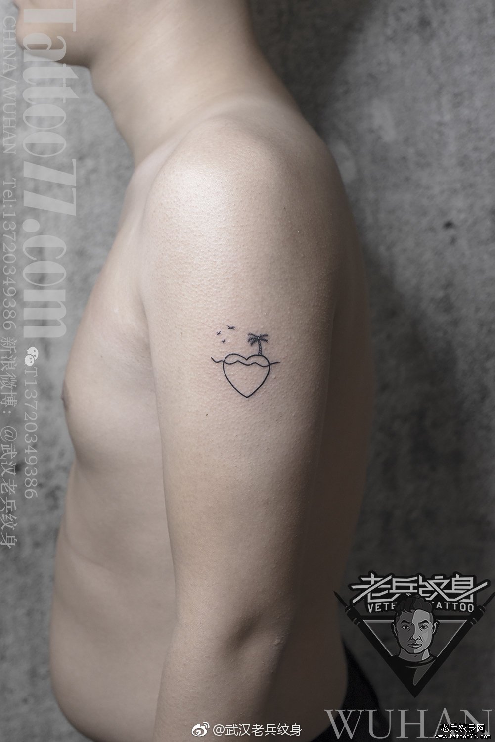 手臂爱心椰子树情侣纹身作品(一