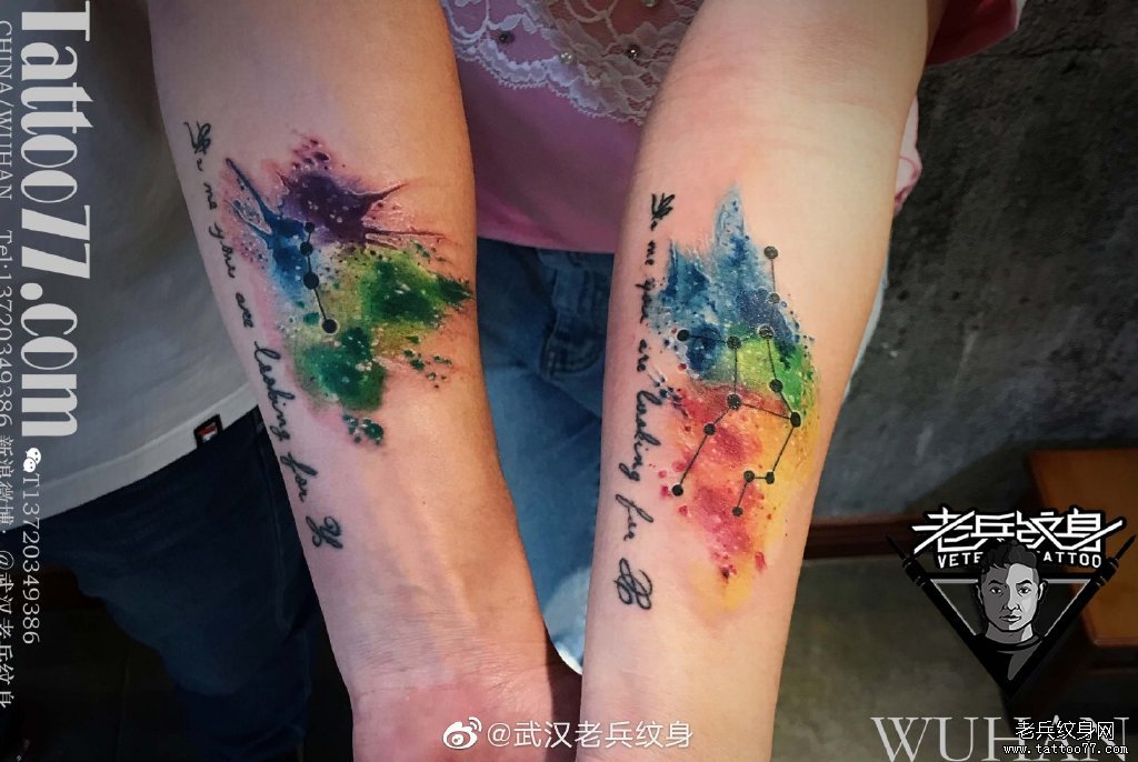 小臂水彩星座情侣纹身作品