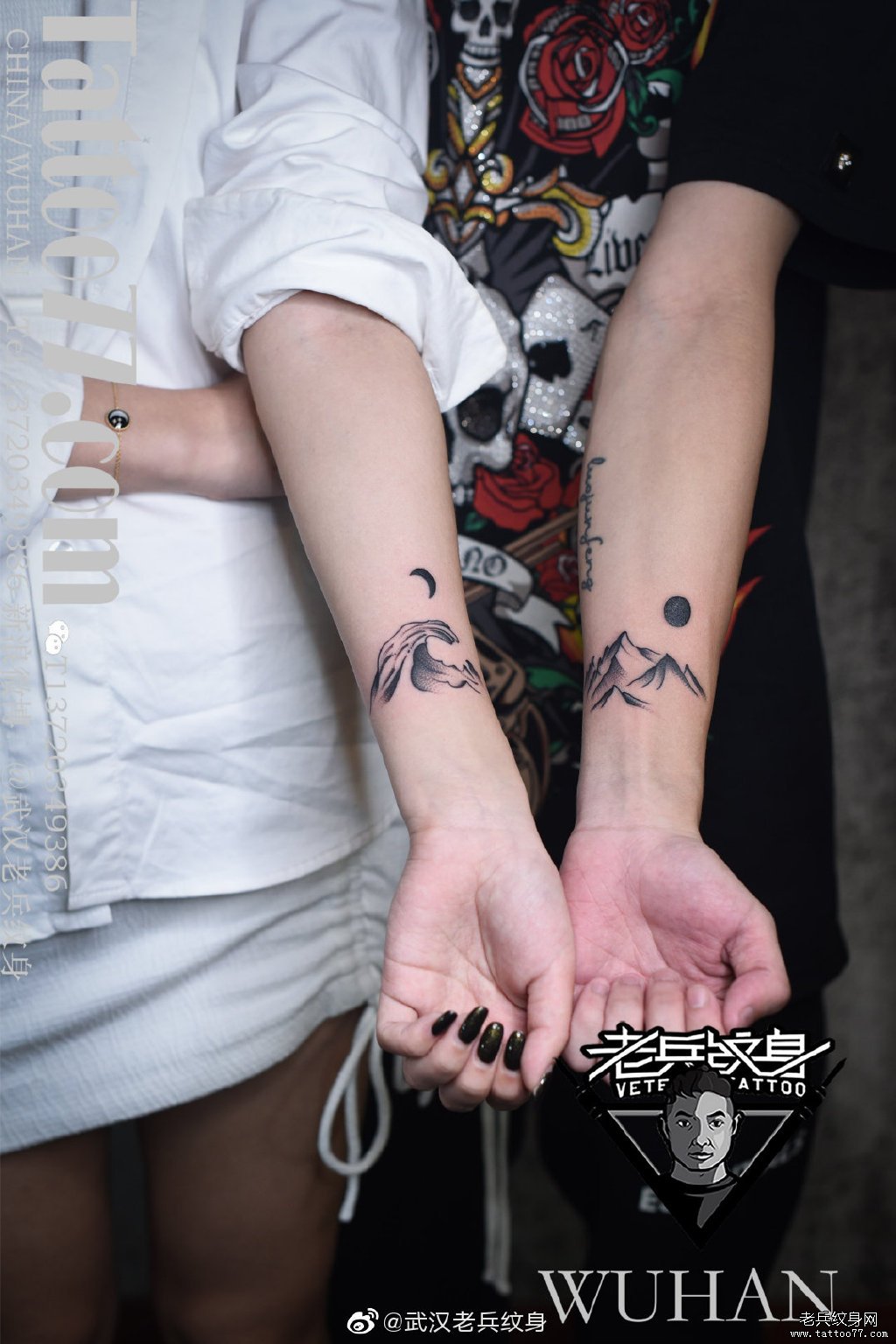 手腕情侣山水纹身作品