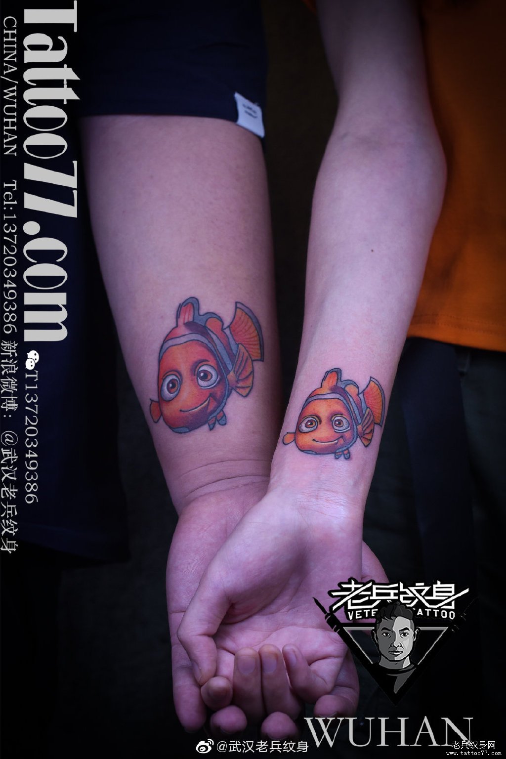 情侣手腕彩色鱼纹身作品