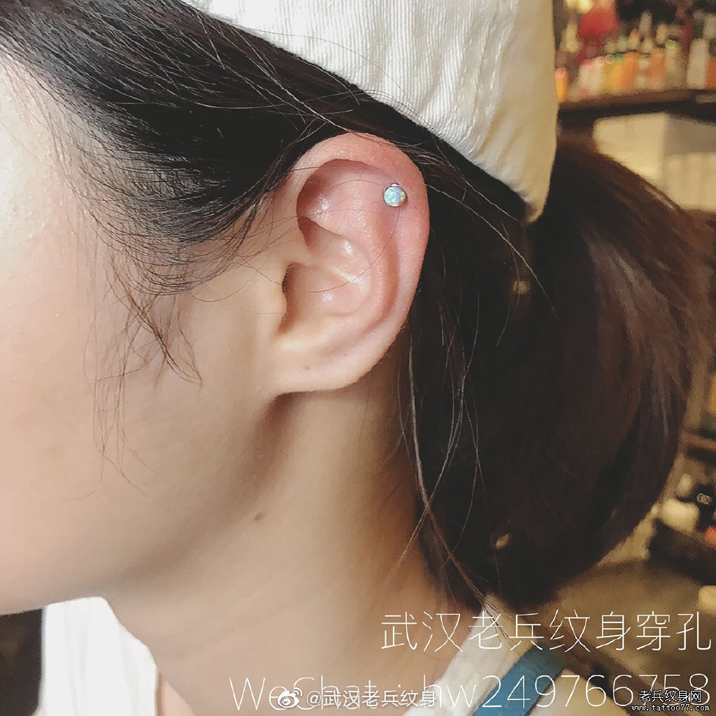 武汉老兵纹身店内耳骨穿孔作品
