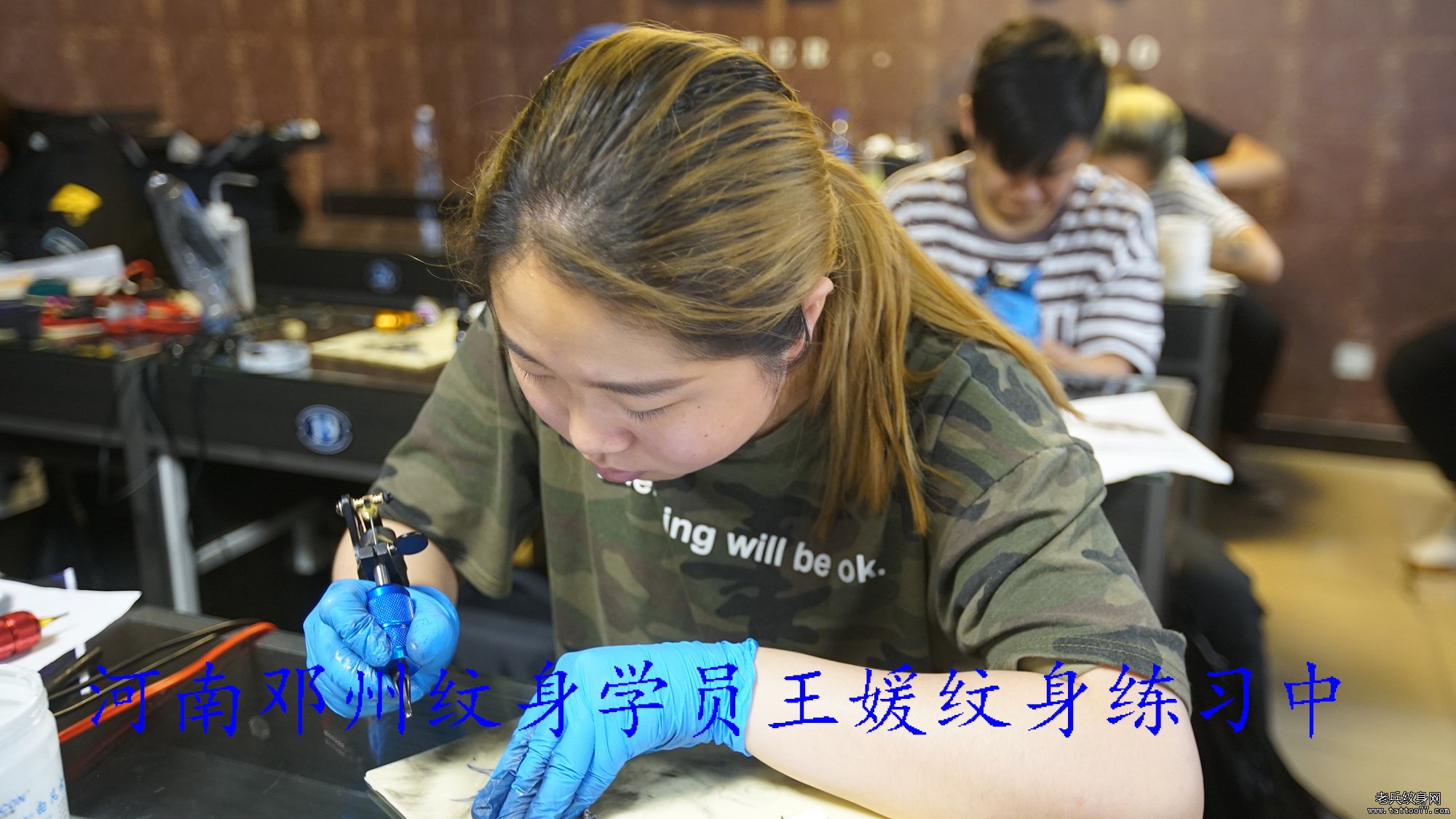 河南邓州纹身学员王媛纹身练习中