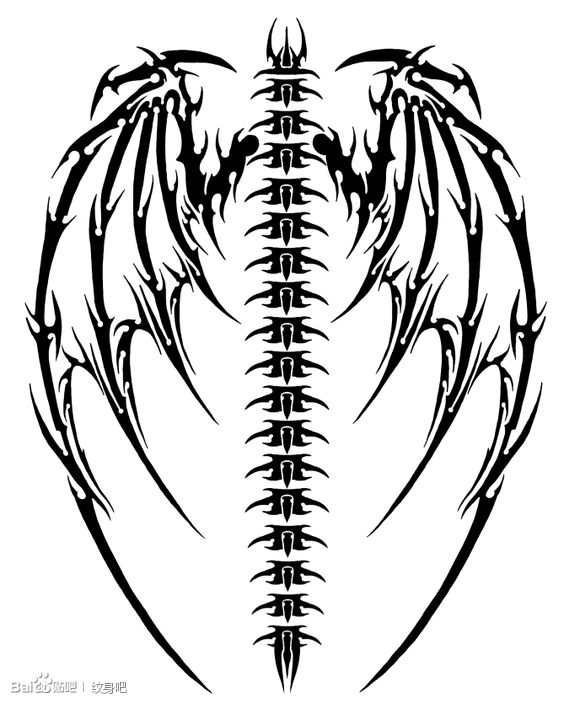 一般经典帅气的满背图腾翅膀纹身图案
