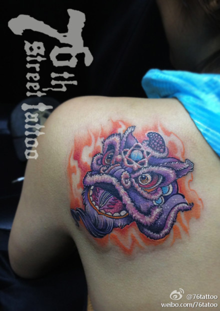 男生后背时尚精美的狮头纹身图案