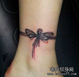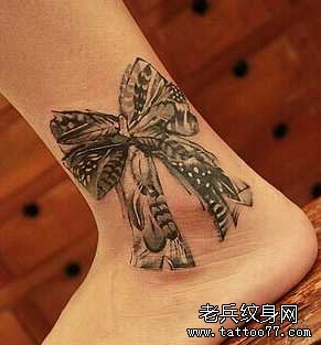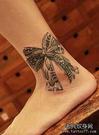 腿部蝴蝶结纹身图案