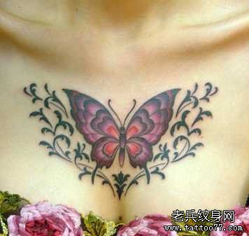 胸部蝴蝶纹身图案