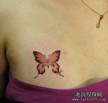 胸部粉蝴蝶纹身图案