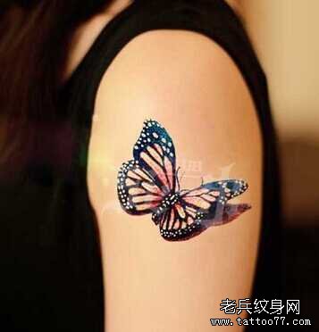 胳膊逼真蝴蝶纹身图案