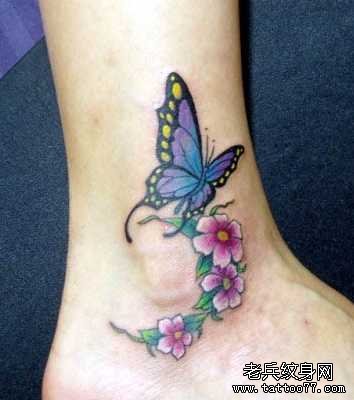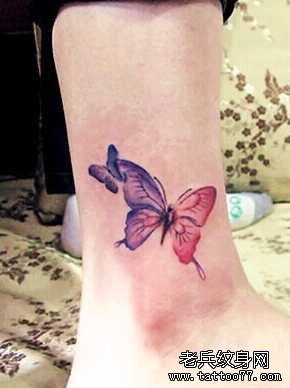 脚背彩色蝴蝶纹身图案