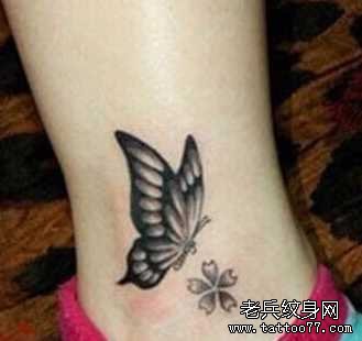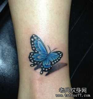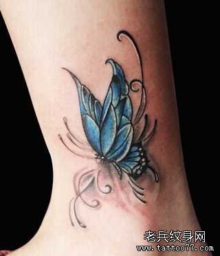 腿部蝴蝶纹身图案