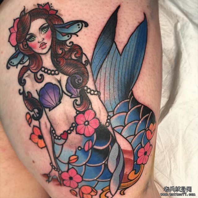色彩美人鱼纹身图案