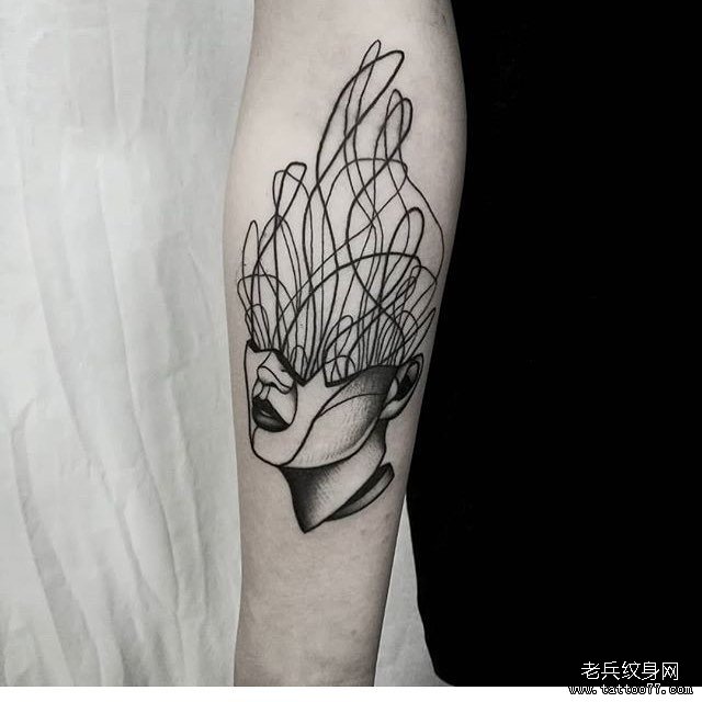 手臂黑灰抽象女郎纹身图案