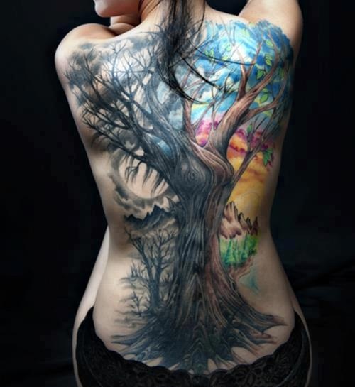 推荐一款霸气的满背大树纹身图案
