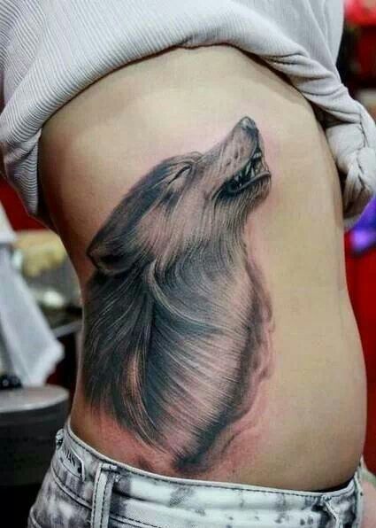 美女一款霸气潮流的狼头纹身图案