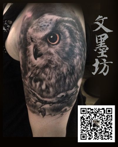 推荐一款肩膀写实个性的猫头鹰纹身图案