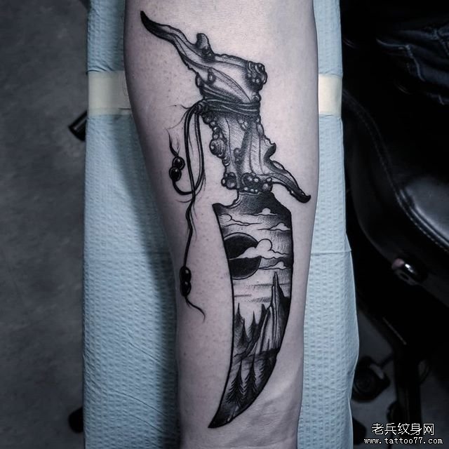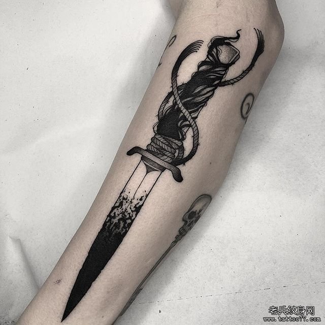 黑灰点刺匕首纹身图案
