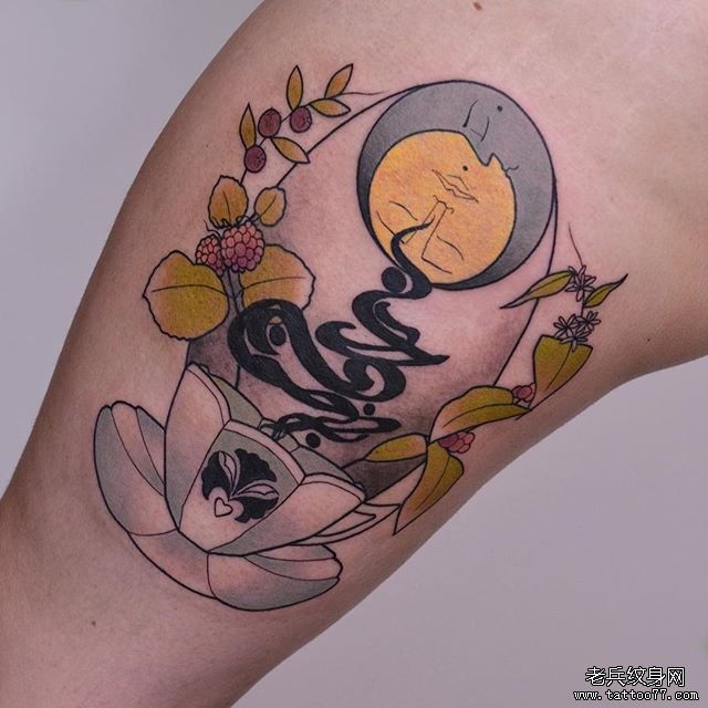 school彩色匕首梵花纹身图案