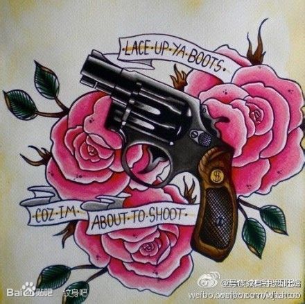 推荐一款时尚个性的手枪玫瑰花纹身图案